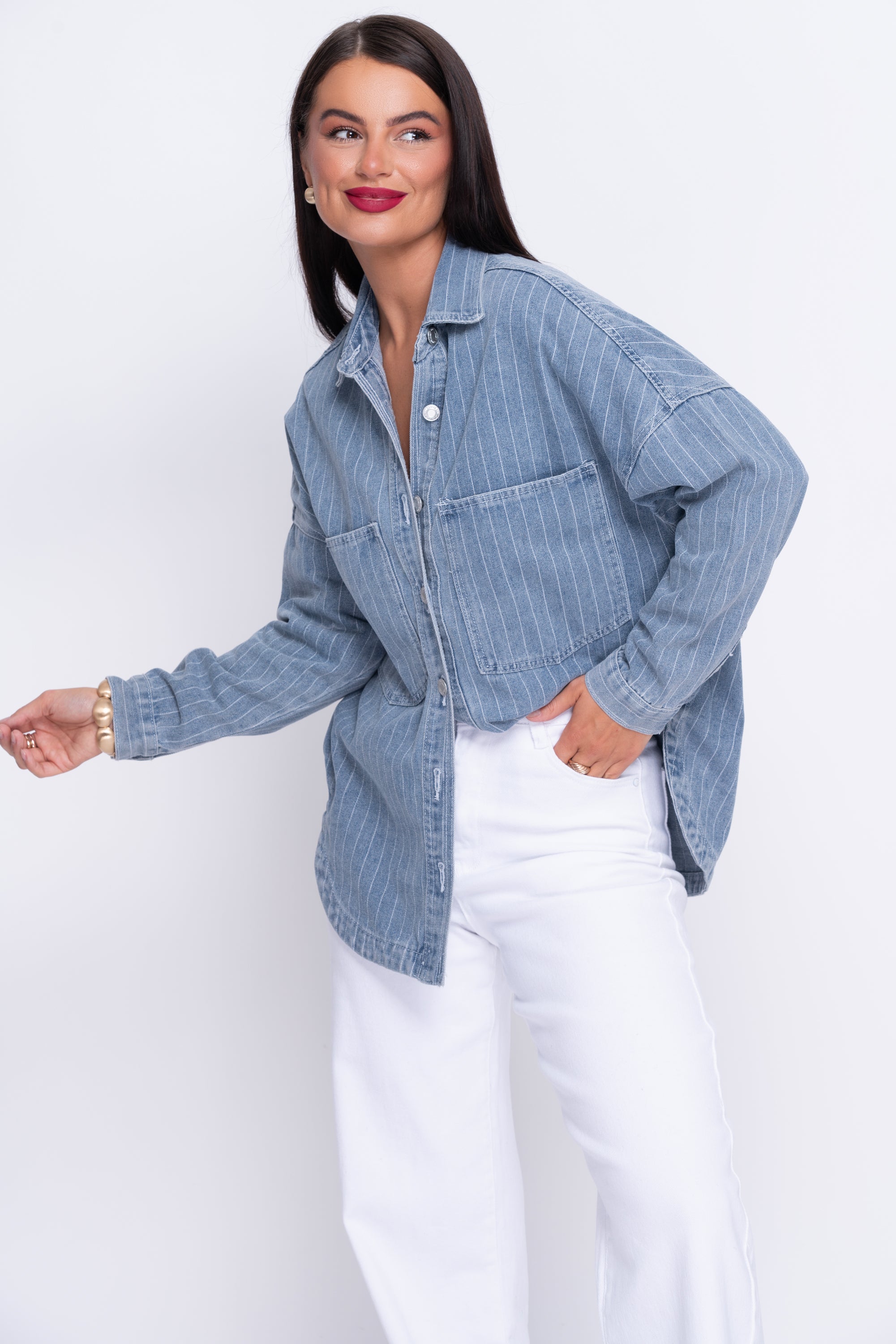 Shirt or shacket, you choose. Wear it as it comes or layer it on top of a sharp white top and trousers. Kick back and relax in this oversized 'go anywhere' casual shacket.